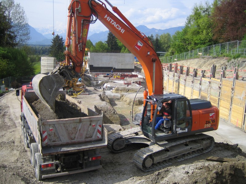 Um die gesamte Palette der für unsere Arbeiten benötigten Bagger abzudecken, setzen wir derzeit 20 Bagger mit unterschiedlichen Eigenschaften und in verschiedenen Gewichtsklassen ein. Außerdem stehen rund 150 Anbaugeräte zur Verfügung, die effizientes Arbeiten der Bagger auf den Baustellen gewährleisten. 13 Bagger sind zudem mit vollhydraulischen Wechselsystemen ausgestattet, wodurch die Anbaugeräte schnell getauscht werden können. Aktuell betreiben wir 8 schwere Kettenbagger (über 20t), 9 Mini- und Midibagger (bis 15t) sowie 3 Mobilbagger. Der Hitachi ZAXIS eignet sich beispielsweise besonders für enge Baustellen, da er lediglich einen Arbeits-/Wenderaum von 10 Metern benötigt.
