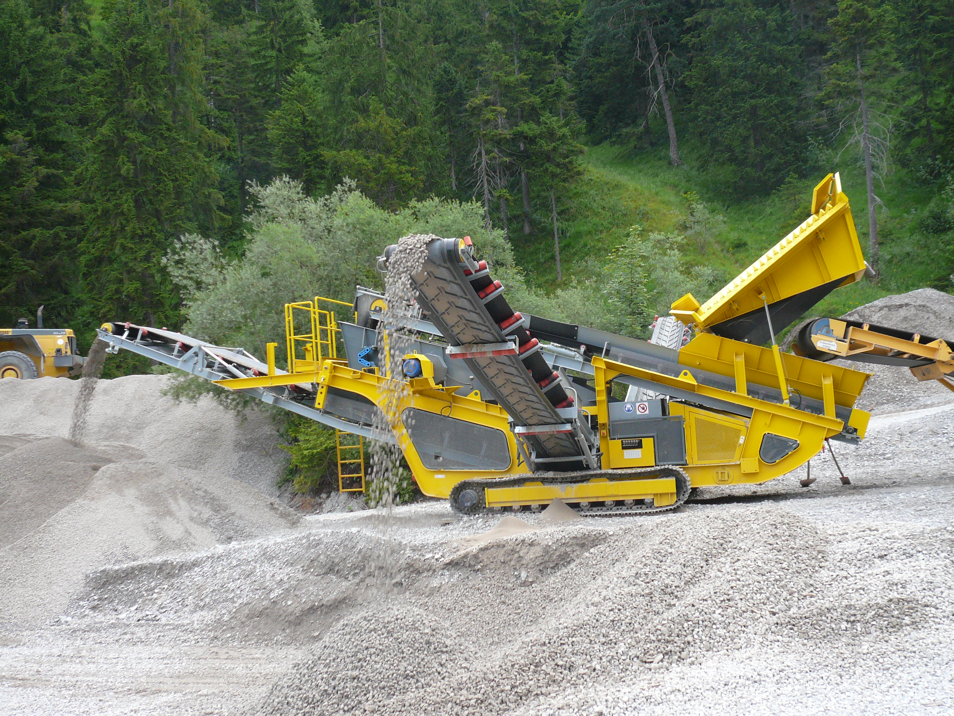 Für die lokale Aufbereitung der verschiedenen Baumaterialien setzten wir 3 mobile Siebanlagen ein.